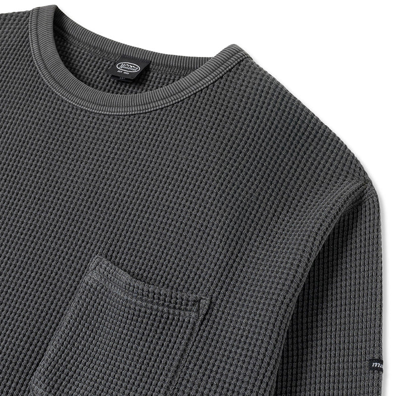 The Manastash FW25 Heavy Snug Thermal Long Sleeve T-Shirt in Black is a high-quality heavyweight thermal top that features a pigment-dyed wash giving it a faded and vintage appearance. This latest iteration of the popular Manastash staple piece features a pocket on the left chest and a thin Black Manastash woven tag on the upper left arm. It also features a slightly oversized, relaxed fit. 100% Cotton.