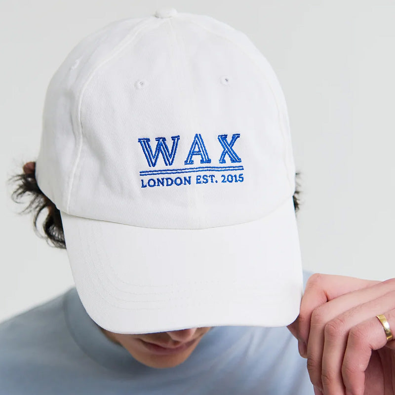 The Wax London Spencer Cotton Sports cap in Off White is a high-quality classic unstructured dad hat that is made out of a washed Cotton twill fabric. It features an embroidered Wax logo on the front of the hat in Blue that is based off of vintage London store front logos. It also has a curved brim, and features a Wax London logo tag on the back adjustable strap back closure. 100% Cotton.