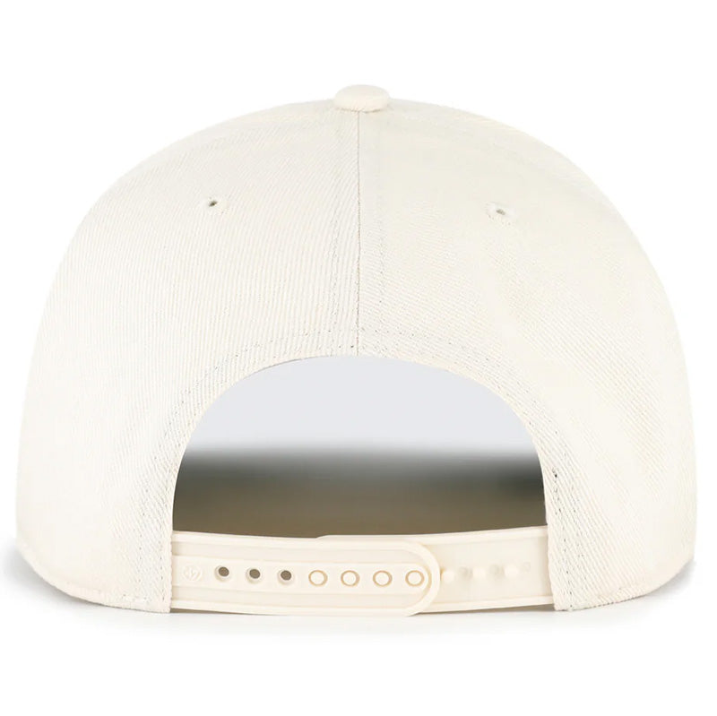 The University of Michigan Wolverines Pomona Hitch hat in Natural from '47 is a high-quality soft-structured hat with a curved brim that is made out of a heavyweight Cotton Twill fabric. It features a large embroidered Michigan Wolverines 'Pomona' arch design on the front of the hat in a neutral Dark Tan and Grey color way. It also features a small '47 Brand logo embroidery on the left side of the hat, a Dark Tan ultrasuede under brim, and an adjustable snapback closure in the back. 100% Cotton with Suede under-brim.