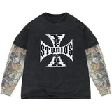 The Museum of Peace & Quiet Spiritual Experience Long Sleeve t-shirt in Black is a high-quality faded Black long sleeve t-shirt that features MOPQ peace sign graphics on the front left chest and across the back of the tee in White. 100% Cotton.