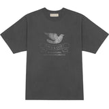 The Museum of Peace & Quiet Warped Wordmark t-shirt in Matcha Green is a high-quality t-shirt that features a distressed and faded White 'Peace & Quiet' warped wordmark logo on the front left chest, and larger across the back of the shirt. 100% Cotton.