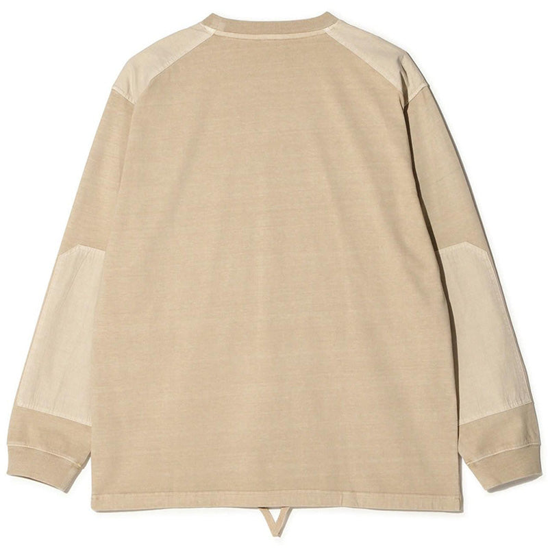 The Manastash FW25 Armor long sleeve top in Sand is the latest version of the brand's military-inspired shirt. It is a high-quality heavyweight custom top that is heavily washed and faded for a vintage look, and it features a large washed Cotton twill panel with a velcro-closure pocket on the left chest of the shirt. The pocket also features an embroidered Manastash mountain logo on it and a woven keyring at the bottom of it. Additional features include reinforced Cotton twill shoulders and elbows, an adjustable drawstring at the bottom hem of the shirt, and a relaxed, slightly oversized fit. 100% Cotton.