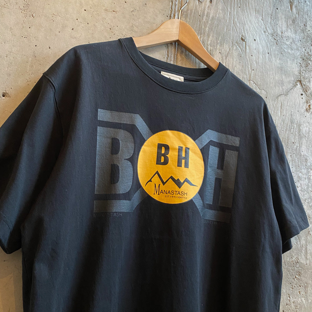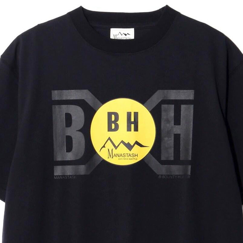 The Manastash x Bounty Hunter t-shirt in Black is a limited collaboration item with the Tokyo, Japan-based toy and clothing brand, Bounty Hunter. This high-quality, heavyweight t-shirt features a mash-up of their logos across the chest and on the bottom back hem of the shirt in a tonal Black and Yellow. It also features a slightly oversized fit. 100% Cotton.