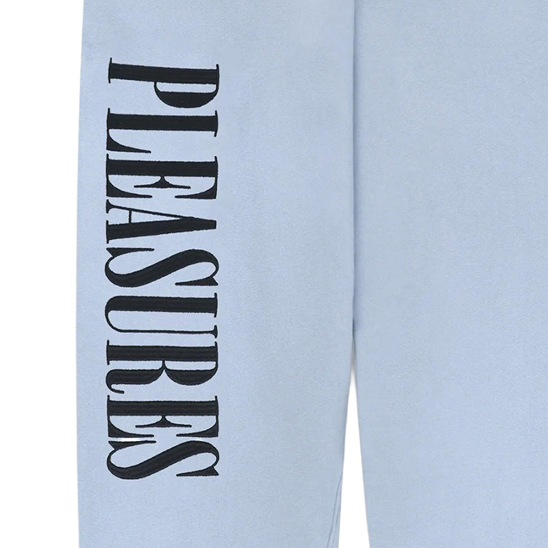The PLEASURES Onyx Sweatpants in Slate are high-quality heavyweight sweatpants that are made from a super-soft yet heavyweight 380 GSM fleece. They feature a large embroidered PLEASURES logo down the right leg in Black. They also feature two front pockets, one back wallet pocket, an adjustable natural drawstring on the elastic waist, and elastic cuffs at the bottom leg openings. The fit on these is a relaxed and baggy straight leg sweatpant fit. 57.1% Cotton, 42.9% Polyester.