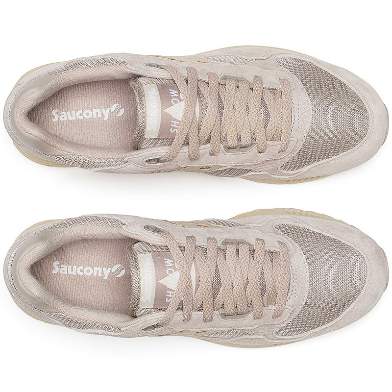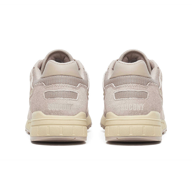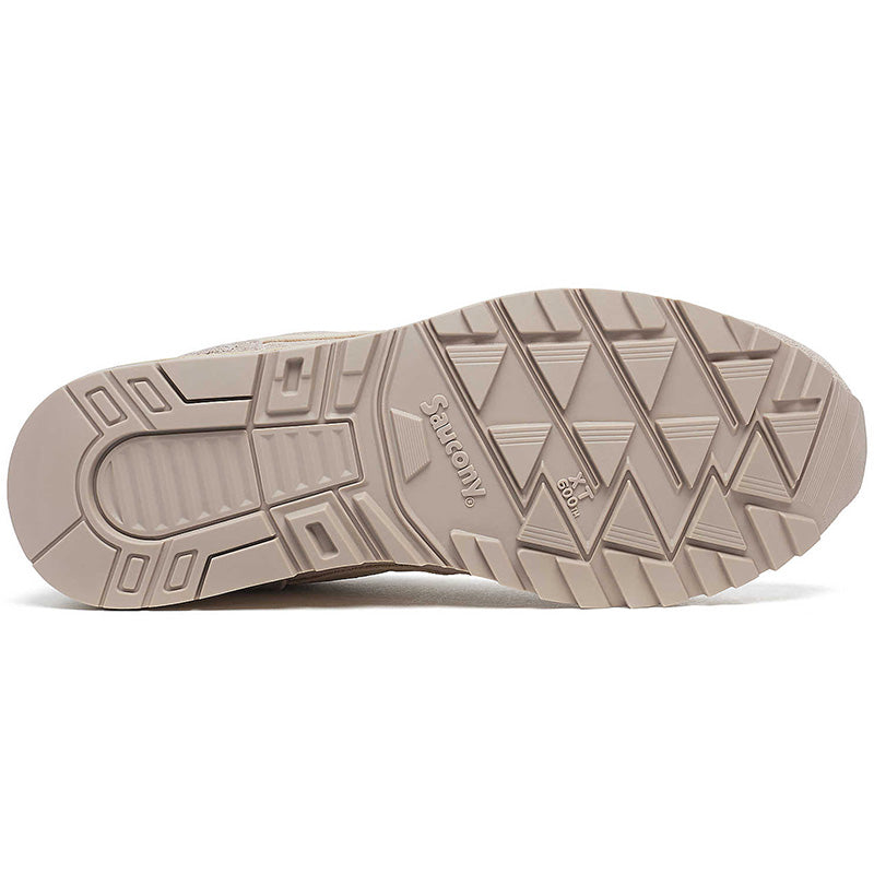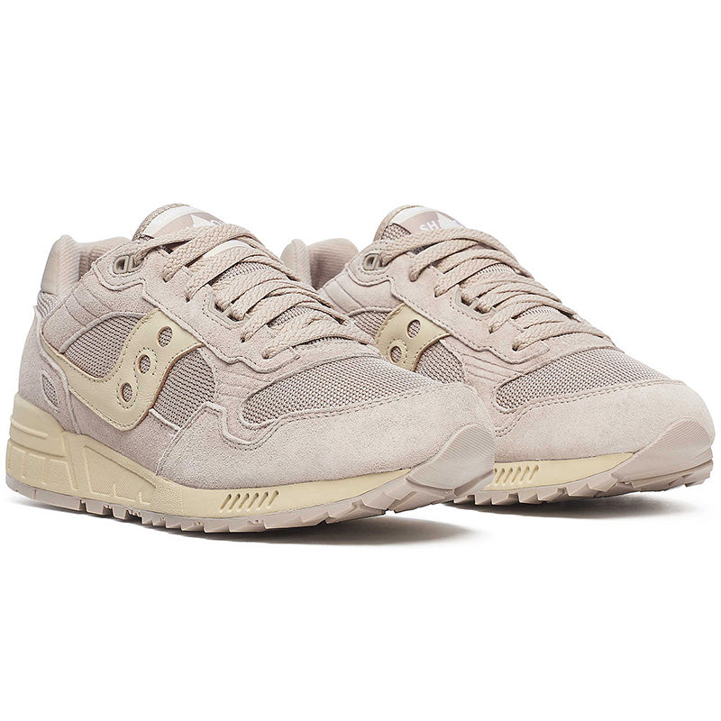 The Saucony Shadow 5000 sneakers in Morel / Sand have a tonal nubuck suede and nylon mesh construction in a light warm Grey, as well as a Tan leather Saucony 'S' stripe on each shoe.  This retro running silhouette first debuted in the 1980s as a high-mileage running sneaker and it features a comfortable EVA cushioned midsole and a XT-600 Triangular Lug rubber traction outsole.  This shoe also features tonal light warm Grey laces, a Tan midsole, and a Saucony woven tag on the tongue.  Suede, Nubuck, Leather and Nylon Upper with Rubber Sole.
